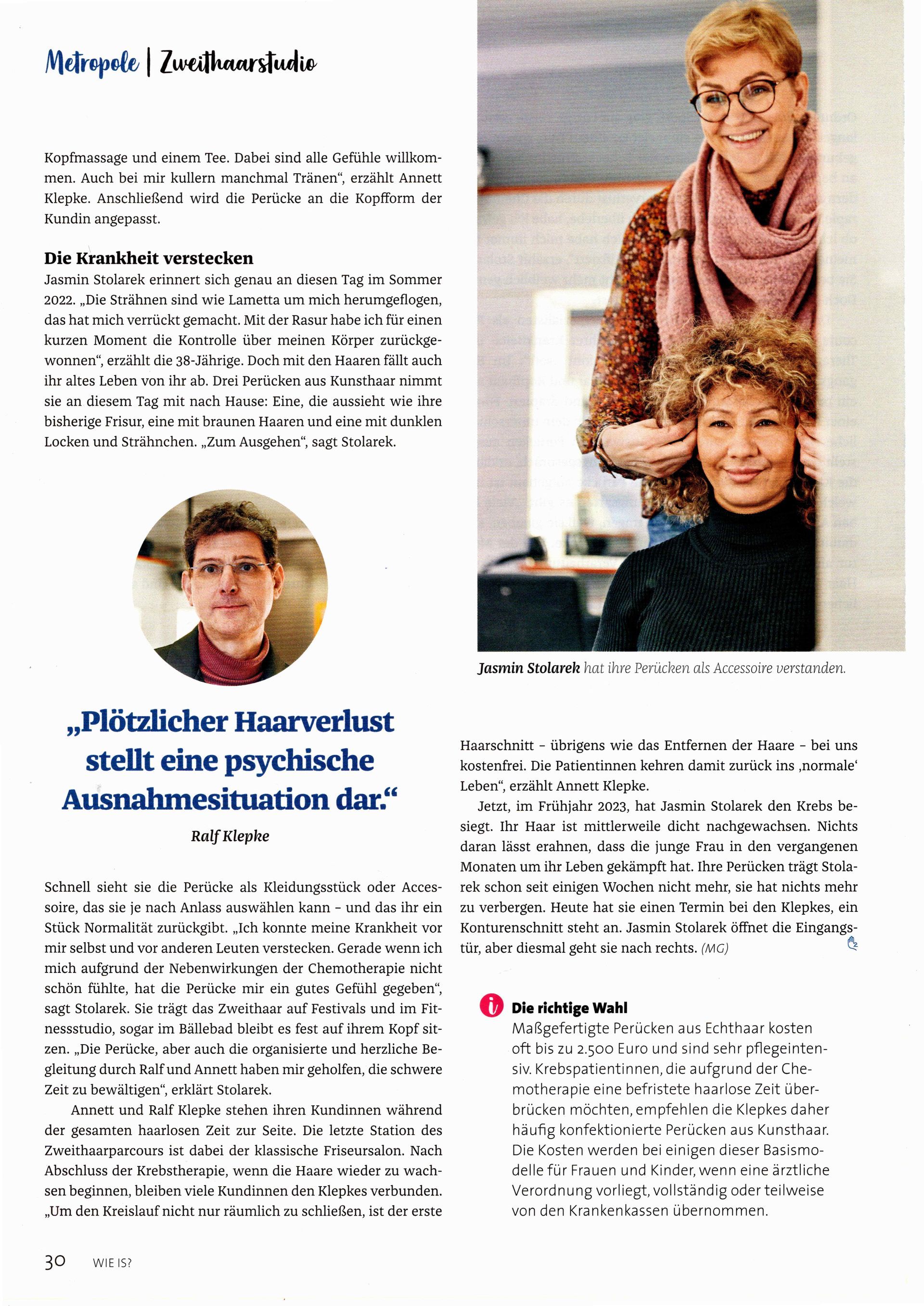 Ralf Klepkes führt in Essen einen Friseurladen. Das Geschäft gibt es seit 30 Jahren. Der Fokus liegt dort auf dem Zweithaar. Das Perückenhandwerk war beim Essener Teil seiner Meisterausbildung. Ersatzhaare bietet er schon lange an. 2017 legte er den Schwerpunkt auf das Angebot. Seine Produkte passt er immer an die Bedürfnisse seiner Kunden an.